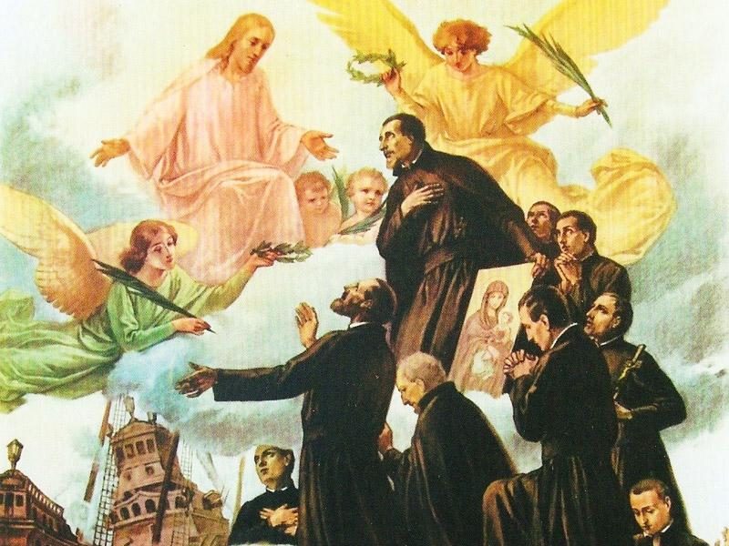 Em junho de 1570 partiu de Lisboa para o Brasil o Beato Padre Inácio de Azevedo, acompanhado de 70 sacerdotes e irmãos jesuítas. Quis a Providencia que essa gloriosa corte de apóstolos não chegasse ao Brasil, pois a maior parte deles encontrou o martírio, por mãos de hereges protestantes, no Oceano Atlântico. Em 15 de julho de 1570 a nau Santiago, no qual viajavam o Padre Inácio e numerosa leva de jesuítas, viu-se cercada por várias naus de piratas protestantes de origem francesa. Após longa luta em que os católicos, inferiores em número e em armamento, causaram consideráveis estragos aos atacantes, afinal sucumbiu a nau portuguesa. Foram martirizados, por ódio à Fé católica, juntamente com o Padre Inácio, 39 outros jesuítas, sendo 31 portugueses e 8 espanhóis. São venerados como os Quarenta Mártires do Brasil.