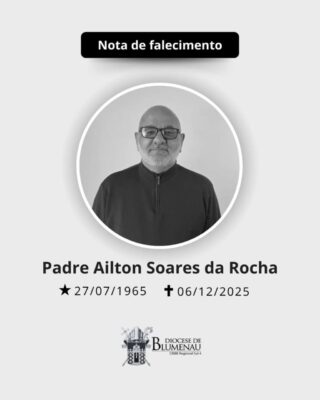 *27/07/1965 +06/12/2025 Com profundo pesar, a Diocese de Blumenau comunica o falecimento, na noite do dia 06 de dezembro, do Padre Ailton Soares da Rocha,