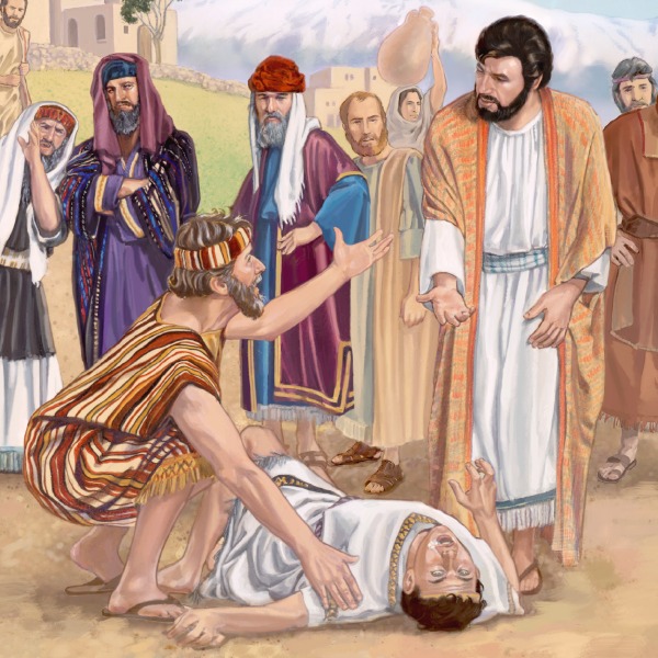 um homem aproximou-se de Jesus, ajoelhou-se e disse: