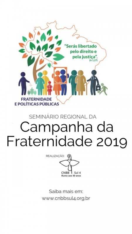 Serão realizados, conforme calendário anexo – Seminários de lançamento da Campanha da Fraternidade 2019 com o tema Políticas Públicas. É de suma importância divulgação do convite para Padres, Diáconos e demais Lideranças, ensejando apoio e incentivo, pois estarão presentes as Lideranças de todas as Paróquias de cada Comarca.