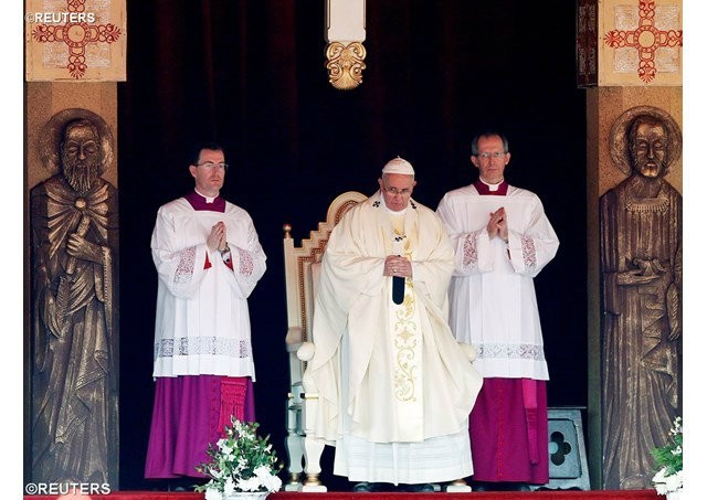 Papa Francisco na Missa em que canonizou o Beato José Vaz, no Galle Face Green, em Colombo, primeiro santo do Sri Lanka – REUTERS