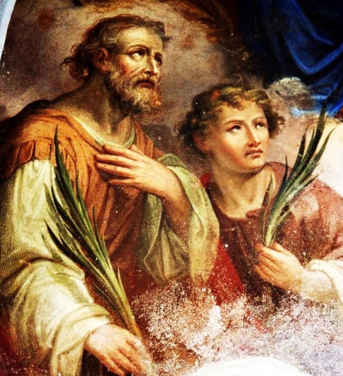 Depois, foram para Treves, atualmente Trier, na Alemanha, onde fundaram uma comunidade cristã que se tornou tão famosa que os dois acabaram sendo denunciados e presos. Condenados à morte, foram jogados na confluência dos rios Sarre e Mosel. E novo milagre ocorreu: em vez de afundar, os dois flutuaram e andaram sobre as águas. Assustados, os pagãos não tentaram mais matá-los, apenas os expulsaram do país.