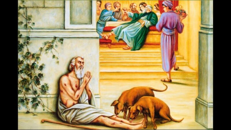 Um pobre, chamado Lázaro, jazia junto do seu portão, coberto de chagas.
