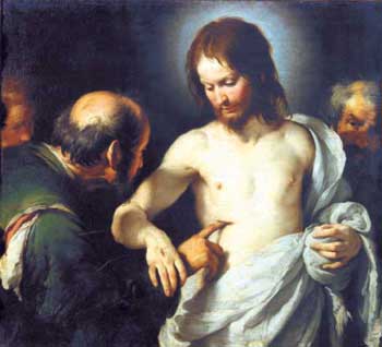 Depois disse a Tomé: «Põe aqui o teu dedo e vê as minhas mãos; aproxima a tua mão e mete-a no meu lado; e não sejas incrédulo, mas fiel».