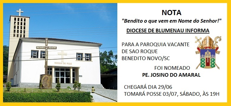 Nomeado o novo pároco de São Roque, Benedito Novo