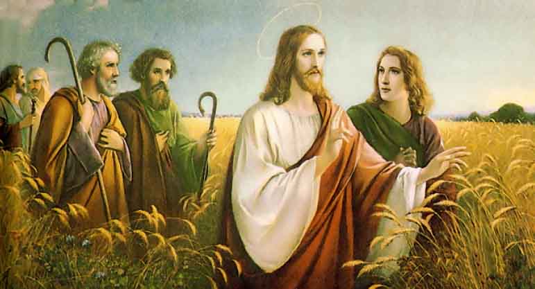 Naquele tempo, Jesus passou através das searas em dia de sábado e os discípulos, sentindo fome, começaram a apanhar e a comer espigas.