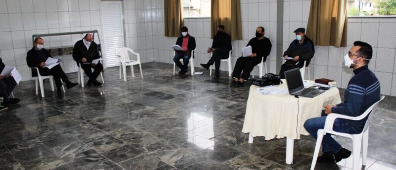 Cuidando dos diversos aspectos da proteção contra a pandemia, os padres da Comarca de Timbó reuniram-se presencialmente nesta terça-feira, 08 de junho de 2021, nas dependências da Igreja Matriz Imaculada Conceição, Timbó. Sob a coordenação do Pe. José Carlos Bressanini, vigário comarcal, e com a presença moderadora de Dom Rafael Biernaski, bispo diocesano de Blumenau, foram abordados resumidamente os seguintes assuntos: Plano Diocesano de Pastoral, Assembleia Eclesial Latino-americana e caribenha, Ano da Família Amoris Laetitia e Motu Proprio “Antiquum Ministerium” (sobre a instituição do ministério do Catequista).