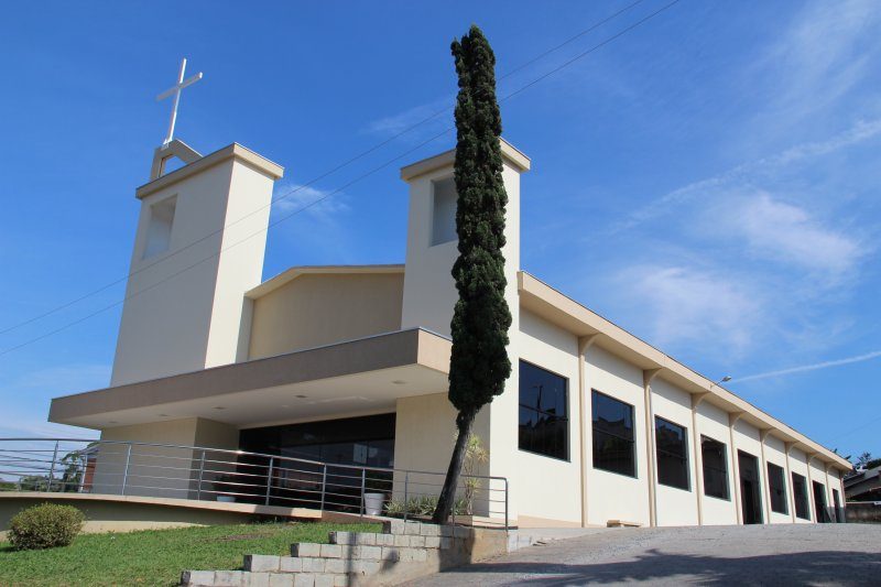 Enfim, em setembro de 1959, iniciaram-se os trabalhos da construção da capela. Projetada em madeira, medindo 15×10 metros, no dia 08 de novembro de 1959, para a alegria de todos, a bonita igreja estava pronta para a primeira missa com a primeira eucaristia de 58 crianças preparadas pelas irmãs catequistas franciscanas, com o apoio das famílias.