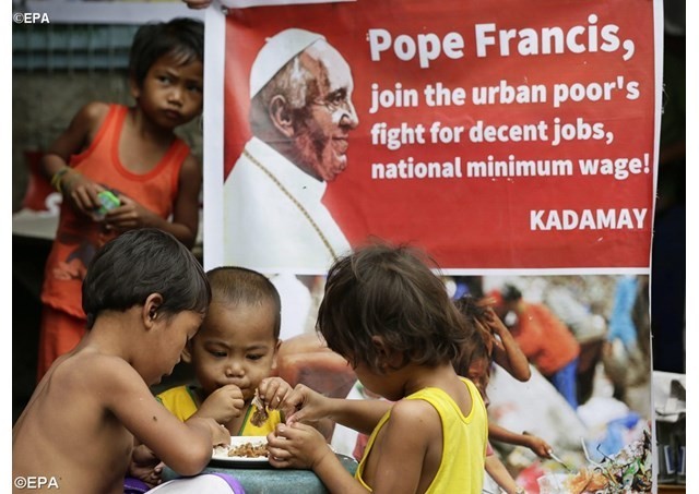 Crianças filipinas comem restos recolhidos no lixão de Quezon City - EPA