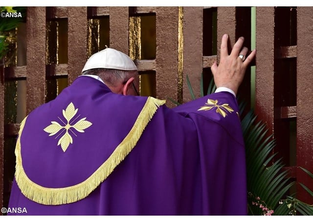 “Entrar por aquela Porta significa descobrir a profundidade da misericórdia do Pai que a todos acolhe e vai pessoalmente ao encontro de cada um. É Ele que nos procura, é Ele que nos vem ao encontro. Neste Ano, deveremos crescer na convicção da misericórdia.”
