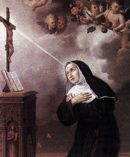 Ela se entregou, completamente, a uma vida de orações e penitências, com humildade e obediência total às regras agostinianas. Sua fé era tão intensa que na sua testa apareceu um espinho da coroa de Cristo, estigma que a acompanhou durante quatorze anos, mantido até o fim da vida em silencioso sofrimento dedicado à salvação da humanidade.