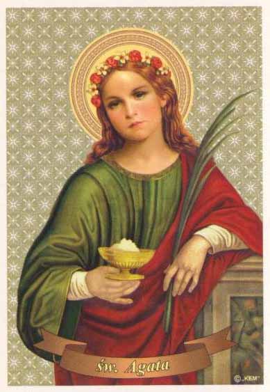 Santa Águeda, era italiana, nasceu por volta do ano 230 na Catânia, pertencia à uma família da nobreza.
