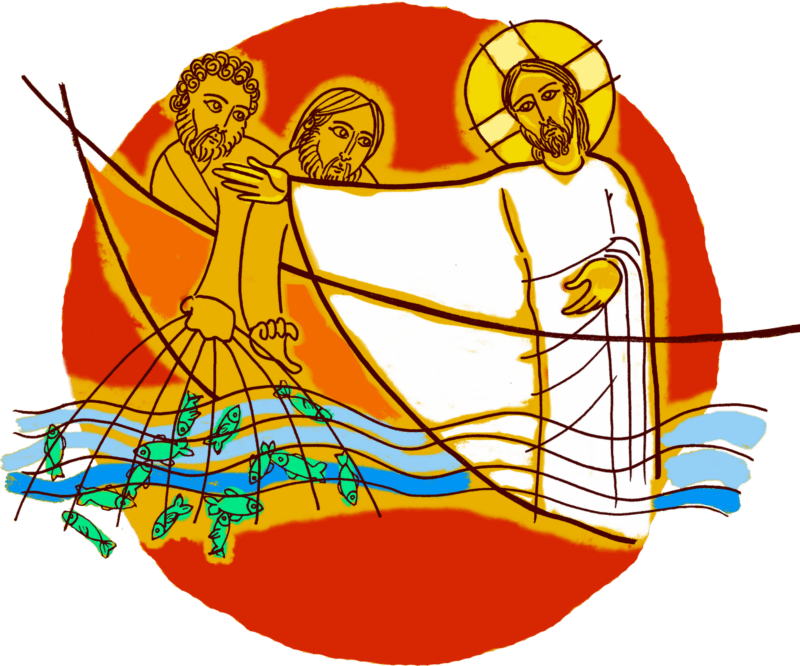 Estavam lançando a rede ao mar, pois eram pescadores.