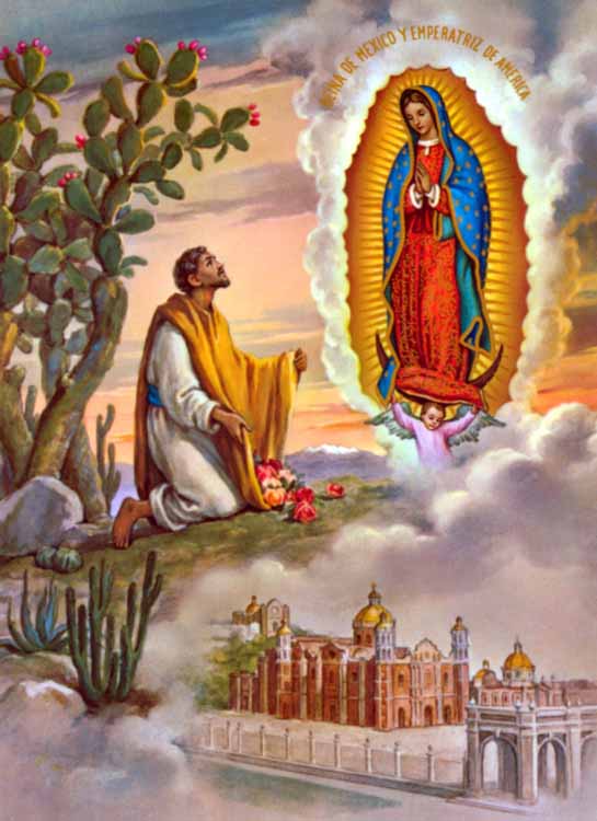 Em 1531, Nossa Senhora apareceu a um príncipe indígena mexicano, o Santo Juan Diego, e deixou a ele um sinal de que era realmente a Mãe de Deus: no manto do vidente apareceu milagrosamente impressa a imagem da Virgem. A partir daí, a evangelização do México, até então lenta e difícil, tornou-se avassaladora, sendo destruídos os últimos resquícios da bárbara superstição dos índios aztecas, que escravizavam outros povos e sacrificavam seus próprios filhos em rituais sangrentos.
