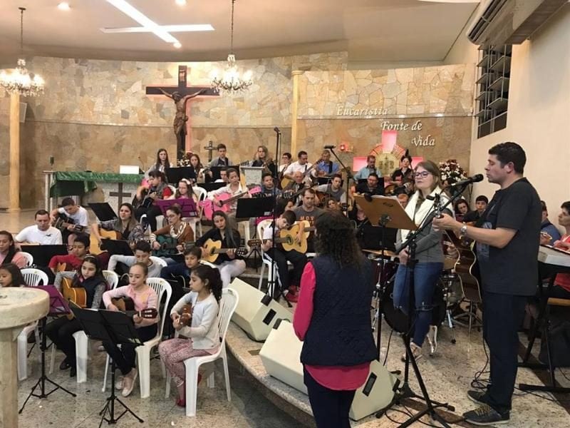 O grupo “Violeiros do Santuário” nasceu em março deste ano de 2017, com aulas de Violão e canto sendo realizadas no Santuário de Nossa Senhora Aparecida, na Itoupava Norte, Blumenau.